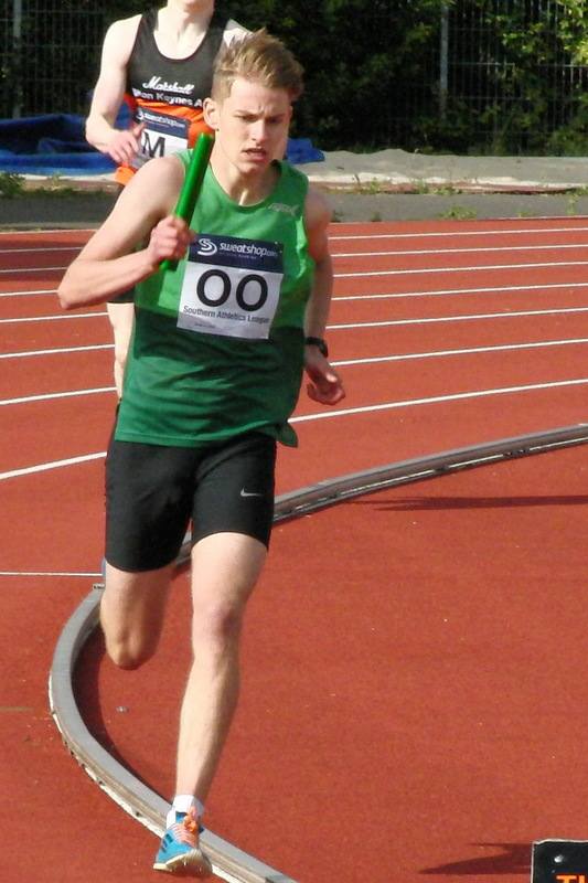 Oscar Dawson brings the baton home in first place 4x400m relay