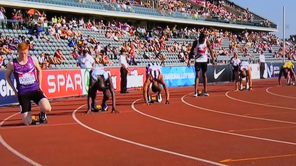 In the semi-finals the top sprinters in the country entered the competition. With the event now live on the BBC sports website, and the wind now switching to a headwind both athletes acquitted themselves well in the fields full of international athletes.