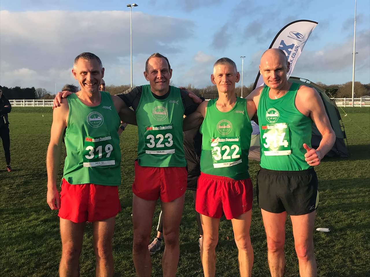 The Harriers over 50 mens team have had a very successful season taking silver team medals at the Southern Road Relays and retaining their Essex Cross Country Championship team crown at Hilly Fields this month.  The season was rounded off with a fine cross country display at the South of England Masters Cross Country Championship, held at Oxford at the weekend.  In a very tight team event only nine points separated the first five teams, with the Harriers taking the silver medals finishing a single point behind Thames Hare And Hounds, with third placed London Heathside a further two points back.  Yet again it was Allen Smalls, the Essex over 50 cross country champion, who led the green vests to the silver medals.  In a very high quality event Smalls was eighth and was backed up by Paul Spowage  21st and Paul Dobson 26th.  There were great runs by Colin Ridley 42nd and Simon Morgan 57th.